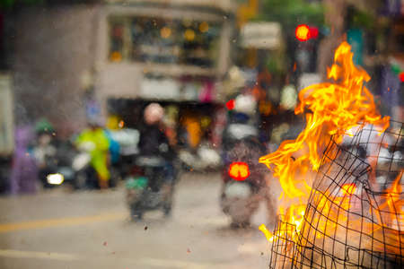 Chinese traditional religious practices, Zhongyuan Purdue, Chinese Ghost Festival, believers burned paper money