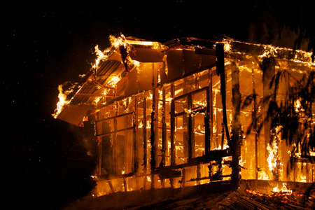A private house engulfed in fire. Arson or natural disaster