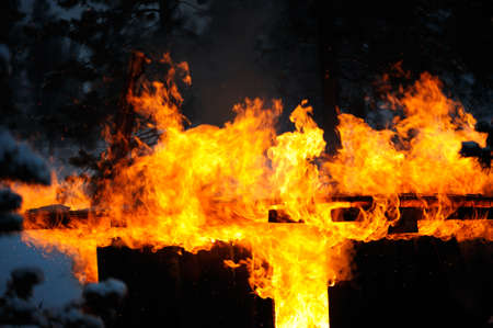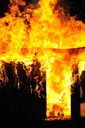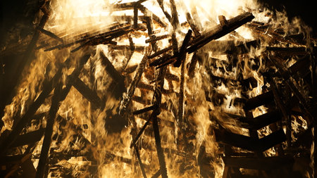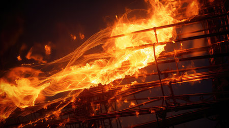 flames consuming a wooden structure, created with generative ai