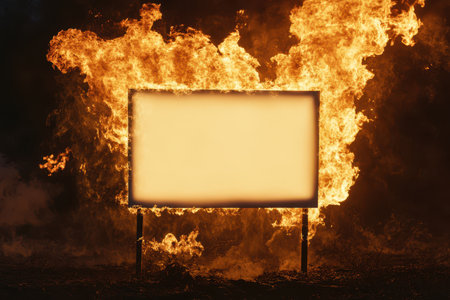 A white sign is on fire in a field