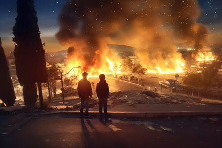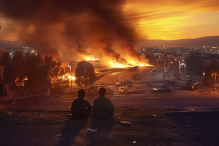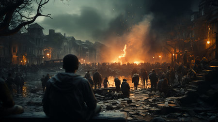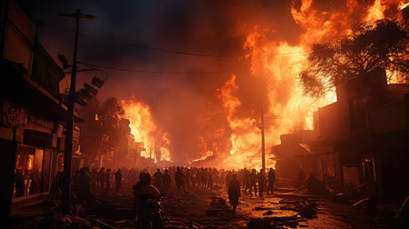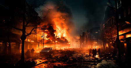Urban turmoil, street riots civil unrest and societal tensions, chaos and intensity of public protest and demonstration in the heart of the city
