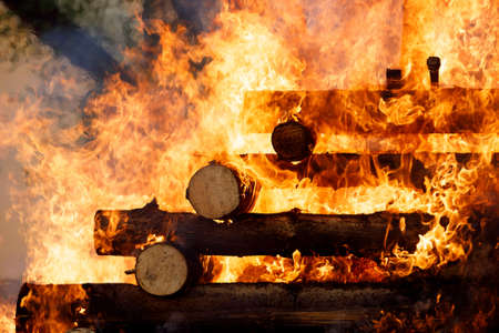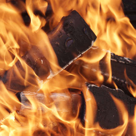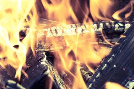 The hottest background. A fire blaze, heat and burning wood close-up.