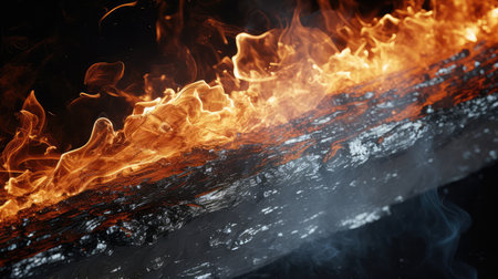 Background texture of vibrant fire on black surface creating dramatic contrast and depth