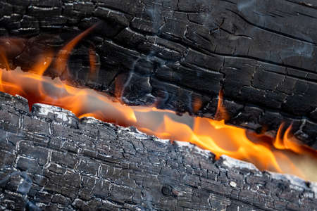 burning firewood, closeup photo