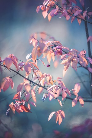 Autumn pink tender Bush of a beresklet on a Sunny day. selective focus. Art. Wallpaper. Selective focus