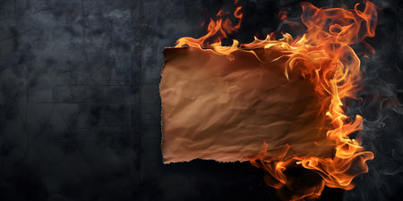 A dramatic image showcasing burning paper laying on a dark surface, with smoke and flames rising from the center. The crumpled texture adds depth.
