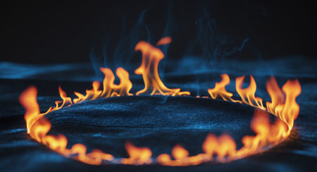 A stunning close-up image of a burning rope showcasing bright sparks and fiery threads. The dynamic scene captures the energy and intensity of the flames among the unique textures.