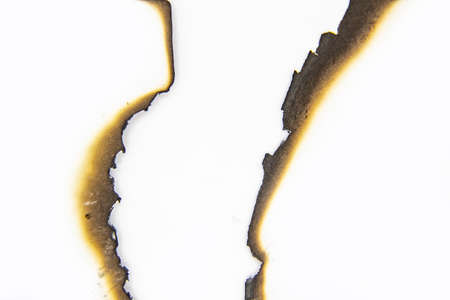 white paper burned half on white background with clipping path
