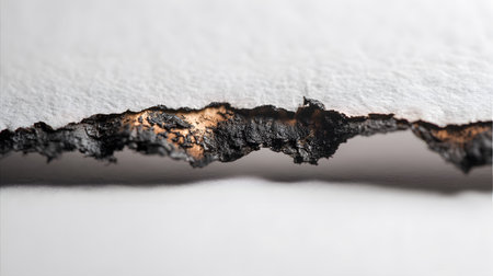 charred paper on a white background