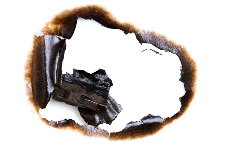 burned hole on a white paper background