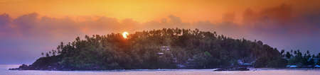 Stunning sunset over a tropical island. Azure waters, white sand beaches