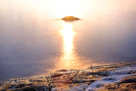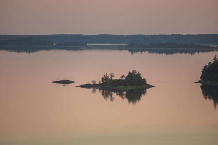Early summer dawn over the sea. Nature of Scandinavia. islands in the sea. Finland. Turku Archipelago