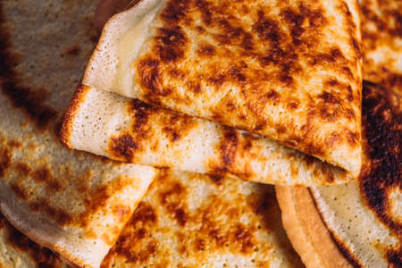 Thin pancakes close up background
