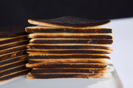 Close up of stacks of burned toast
