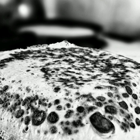 photo of baked pancake from dough large on charcoal