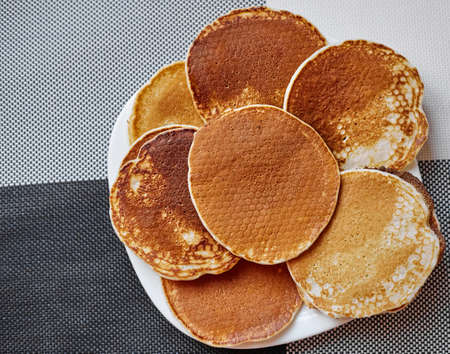 Pancakes on a white plate top view, Pancakes on a white plate,