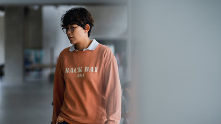 Jakarta, Indonesia - October 2022: a girl is walking at an exhibition in a jakarta library.