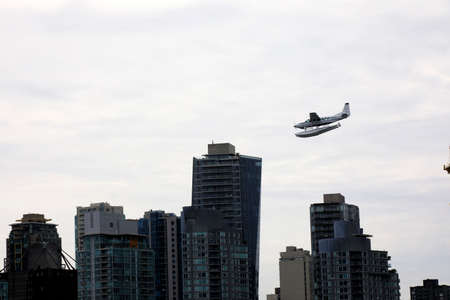 Beautiful Downtown and Stanley park in Vancouver from sea plane, Canada British Columbia