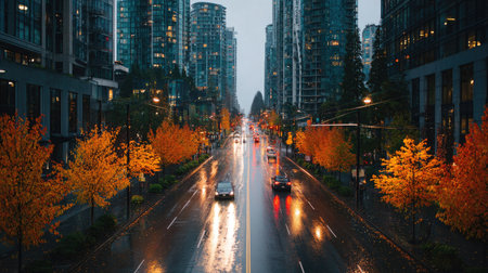 Panoramic View of Modern Downtown Cityscape during a sunny fall day. Vancouver, British Columbia, Canada.