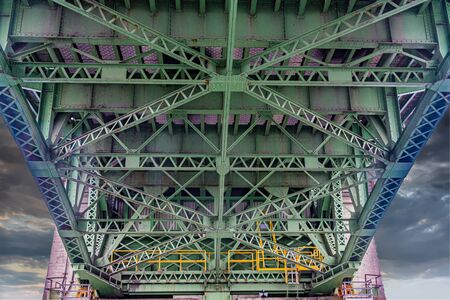 Detail of the steel structure of the Pont de Bir-Hakeim bridge in Paris, France