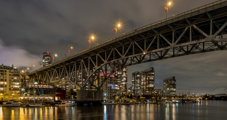 Granville Bridge. Granville Island Night Scene, Vancouver, British Columbia. Street view, travel photo.