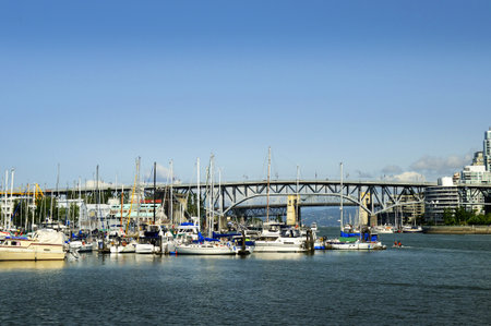 Marina Under the Burrad Bridge in Granville Island in Vancouver BC Canada