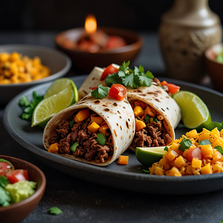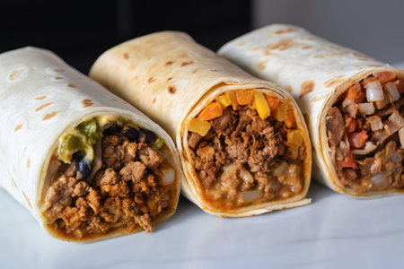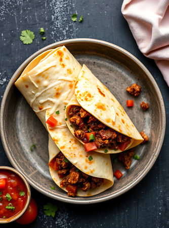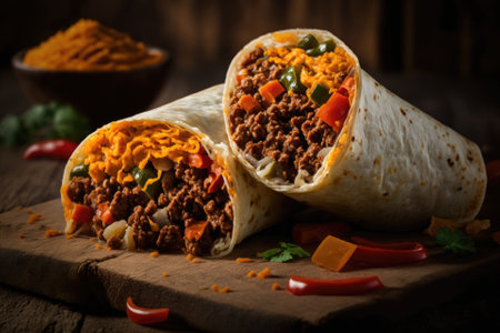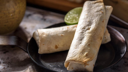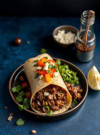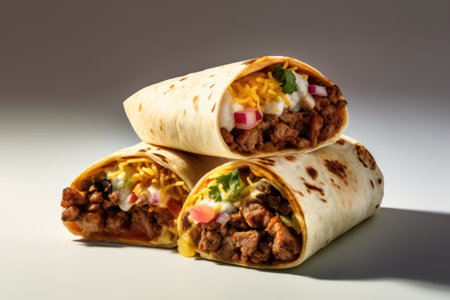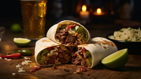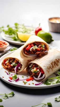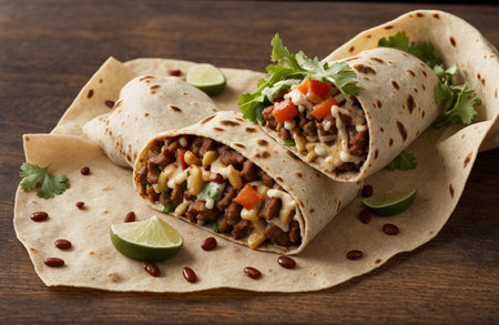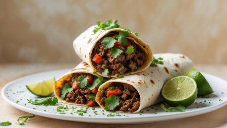 A flavorful beef burrito wrapped neatly, showcasing the rich Mexican culinary tradition.