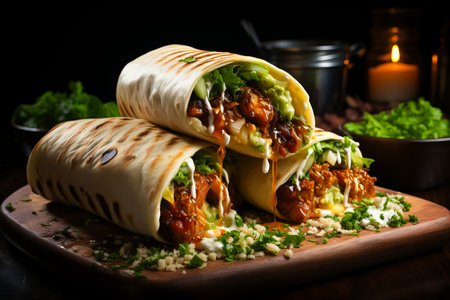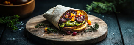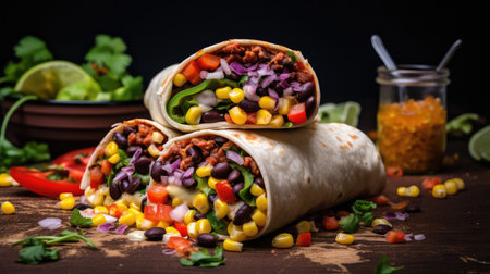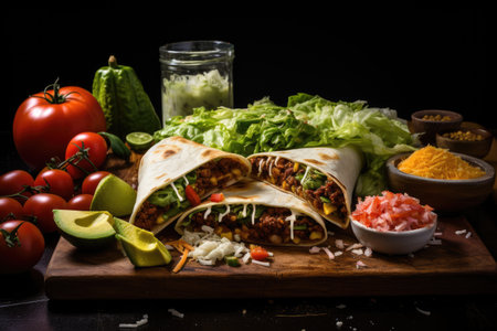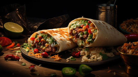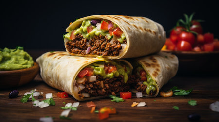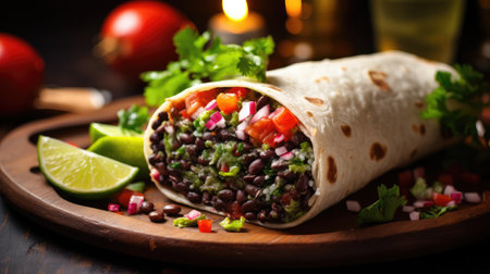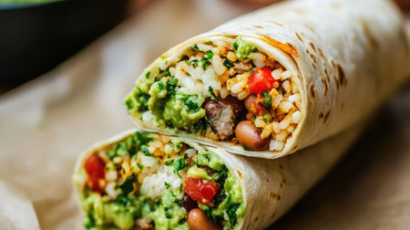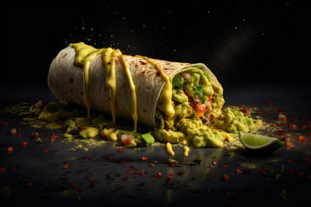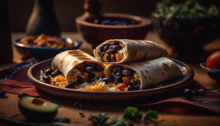 veggie burrito wrap with black beans, guacamole, and cheese, created with generative ai