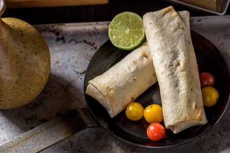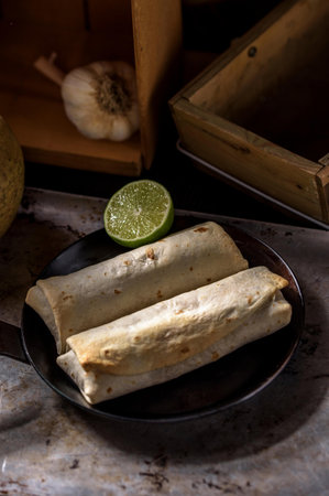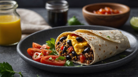 Mexican Breakfast Burrito, Black Surface Table, minimalistic decor