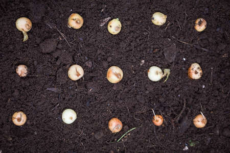 Growing vegetable seeds on seed soil in horticulture garden metaphor, agriculture concept. Sowing seeds in open ground