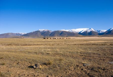 Russia. Mountain Altai. Desert steppes at the foot of the North Chui mountain range along the Chui tract.