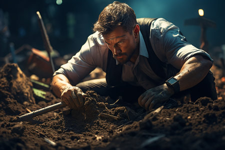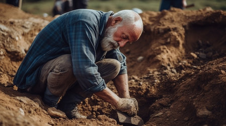 Dedicated archaeologists engage in a focused excavation, unearthing historical artifacts from the earth. Their work highlights the importance of preserving our past.