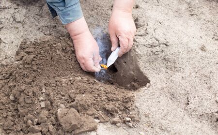 Expelling or smoking a mole from a summer cottage with a smoke bomb