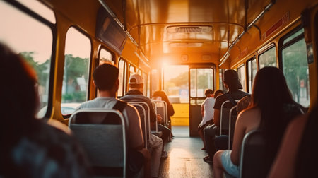 Public Transport Journey at Sunset, Connecting People After Work. Generative AI