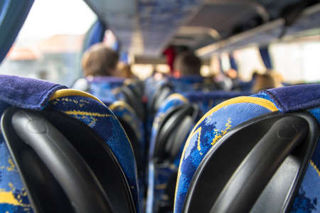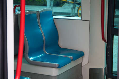 detail of empty chairs on a tram. Concept tourism, travel, holidays.