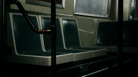 A glimpse into the interior of a vacant subway carriage in the underground metro.