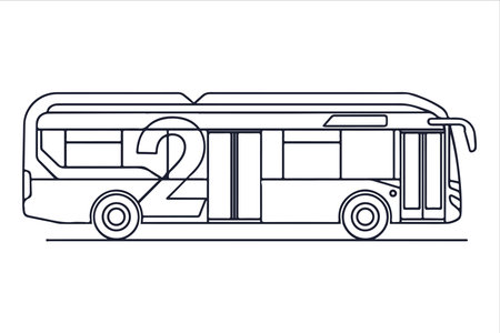 The image depicts a side view of a public transportation bus. The bus has a rectangular shape with large windows along its sides and a door towards the rear. The number '2' is prominently displayed on the front of the bus, indicating its route number. The bus is designed for passenger transport, featuring multiple seats inside and a simple, functional exterior.