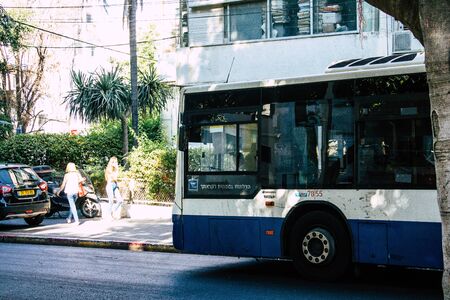 Tel Aviv Israel September 05, 2019 View of a traditional public transport bus in the city of Tel Aviv in the afternoon