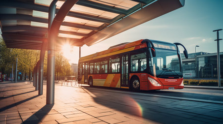 Modern bus arriving at a bus stop. ai generative