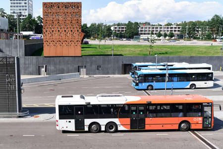 Espoo, Finland - July 19, 2020: Buses on the bus station in the Tapiola district of Espoo.