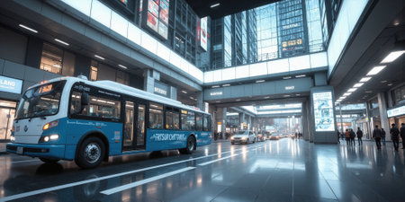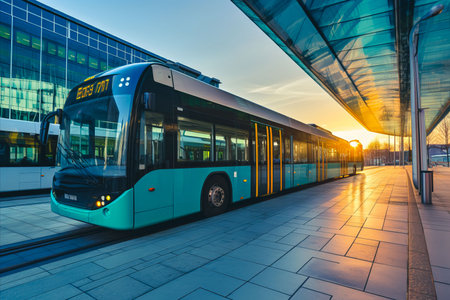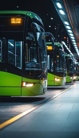 Modern urban station with electric public buses showcasing eco friendly city transportation