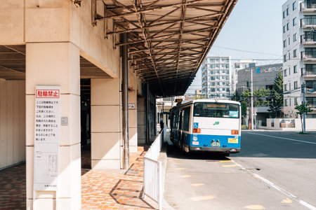 Sapporo, Hokkaido, Japan - April 25, 2023 : Bus terminal near Maruyama Koen Station