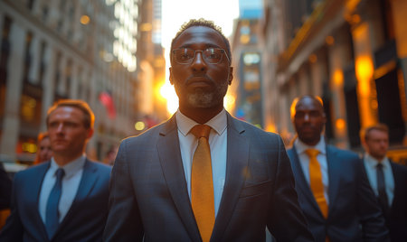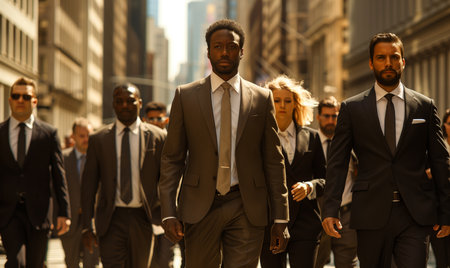 An AI generated illustration of a rear view of professionally dressed individuals in suits and ties