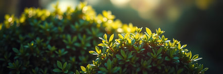 Green leaves on branches for banner concept. Beautiful bush in garden background