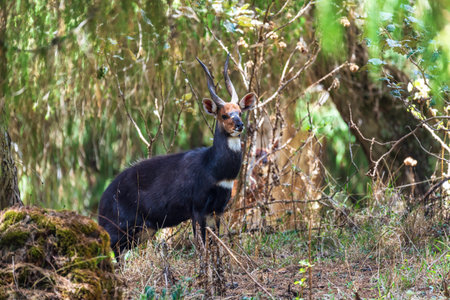 Endemic animals Menelik Bushbuck (Tragelaphus scriptus menelik) in natural habitat, Bale Mountain, Ethiopia,