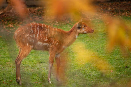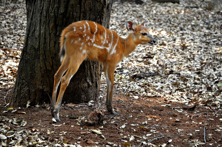 The Nyala baby is stay in garden at thailand
