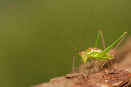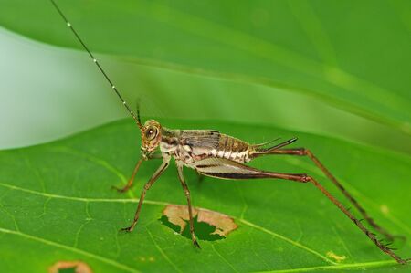 Green bush cricket with a filamentous antennae