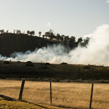 Bush fire in a country town in Hobart, Tasmania.