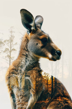 Kangaroo with Australian Landscape Double Exposure