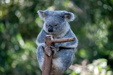 Cute wild koala bear is sleeping on the tree in Noosa National Park on Queensland, Sunshine Coast, Australia